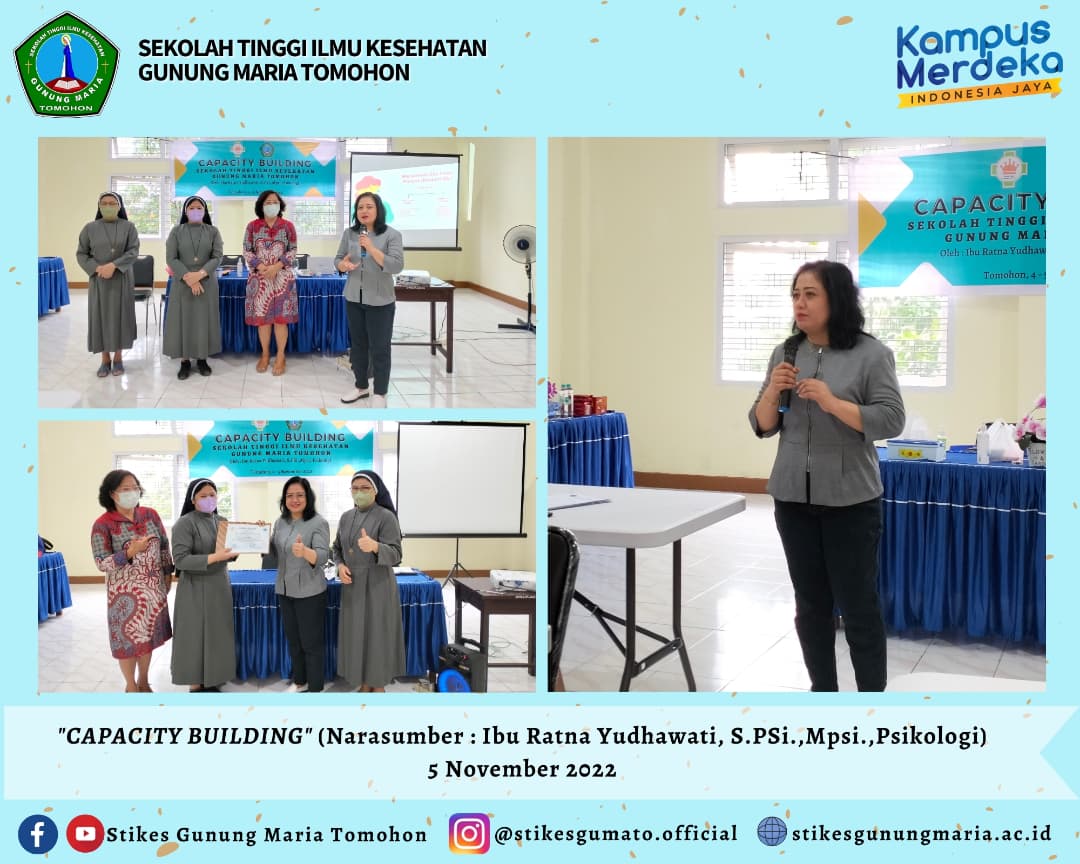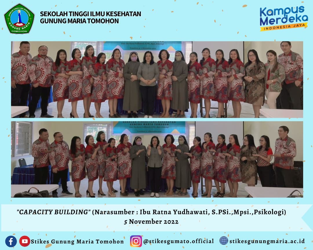 Dalam rangka peningkatan kapasitas SDM di lingkungan STIKES Gunung Maria Tomohon, Yayasan Ratna Miriam bekerja sama dengan metaPROGRESS melaksanakan kegiatan CAPACITY BUILDING untuk tenaga dosen dan tenaga kependidikan.