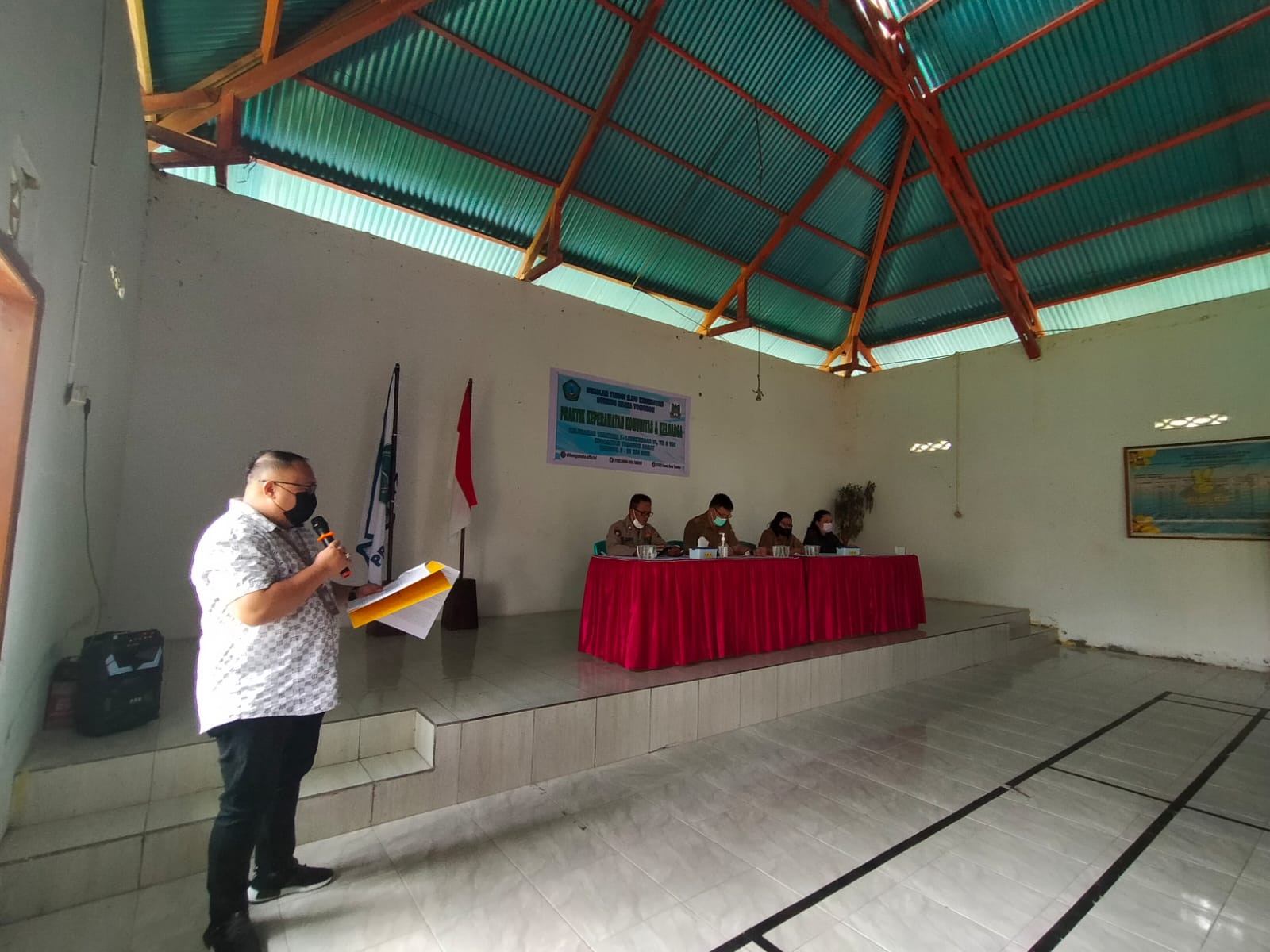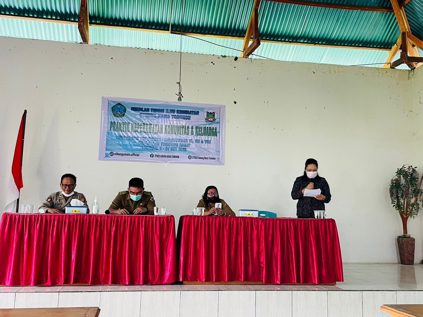 Ketua Sekolah Tinggi Ilmu Kesehatan Gunung Maria Tomohon - Henny Pongantung, Ns., MSN., DN., Sc., bersama dengan Perwakilan dari Kecamatan Tomohon Barat - Welfrintje Takaendengan., Kepala Kepolisian Sektor Tomohon Barat - Aiptu Jemmy Mewengkang., Kepala Kelurahan Taratara I - Jefry A.T. Mentang, S.Kep., serta Ketua Panitia - Fransiskus X. Dotulong, Ners, M.Kep., dan Sekretaris Panitia - Fina Natalia, Ners, M.Kep., mengikuti acara pembukaan Praktik Keperawatan Komunitas dan Keluarga Mahasiswa Program Studi Diploma Tiga Keperawatan Sekolah Tinggi Ilmu Kesehatan Gunung Maria Tomohon Angkatan XVIII, yang dilaksanakan pada hari Senin, 9 Mei 2022, bertempat di Balai Pertemuan Umum Kelurahan Taratara I.