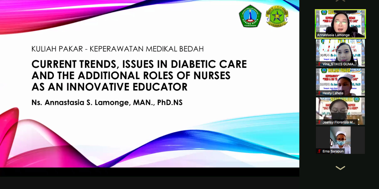 Pada tanggal 05 April 2022, Program Studi Diploma Tiga Keperawatan STIKes Gunung Maria Tomohon bekerja sama dengan Fakultas Keperawatan Unika De La Salle Manado mengadakan kuliah pakar dengan tema: “Tren & Isu tentang Diabetic Care”.